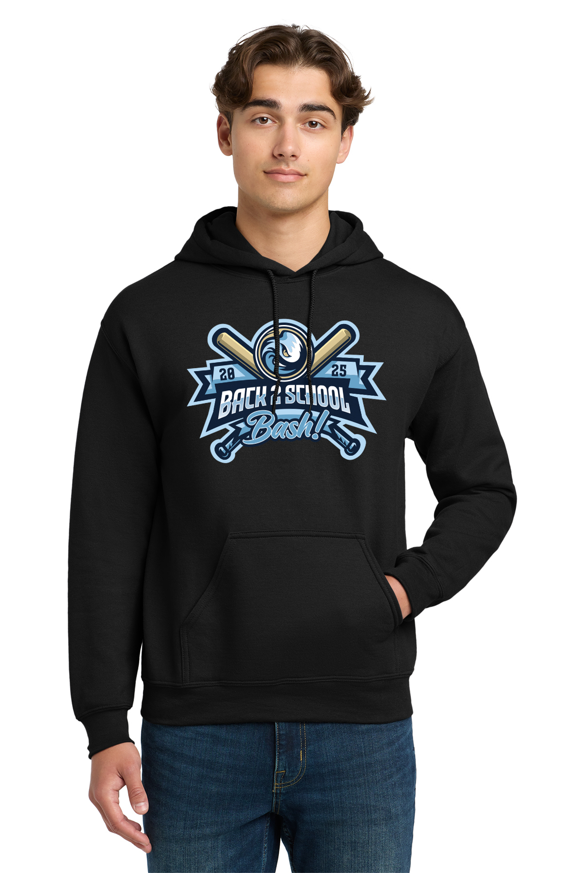 - 50/50 US cotton/poly - Moisture-wicking properties - Front pouch pocket